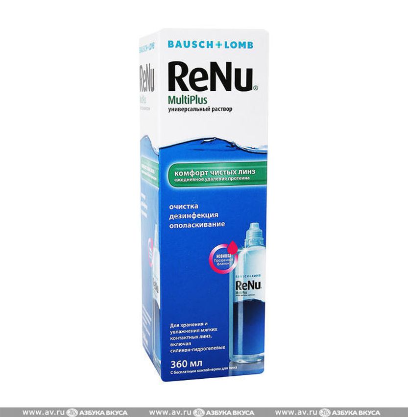 Помимо того, что он осуществляет качественную дезинфекцию средств для коррекции зрения, раствор ReNu Multiplus также отлично справляется с вредоносными протеиновыми отложениями, которые скапливаются на поверхности линз.