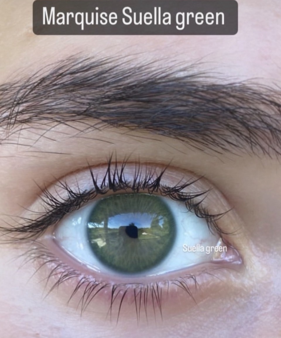 MARQUISE (Маркиза) - мягкие зеленые линзы с окантовкой для карих глаз. Максимально натуральные линзы , для светлых и зеленых глаз , с натуральным рисунком , имитирующим радужку глаза. На карих получается еле заметный зеленый цвет , поэтому для полного эффекта рекомендованы именно для светлых глаз.